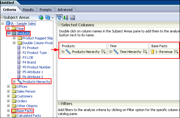 | 2 . | In the Analysis Editor, add the following columns to the analysis criteria: