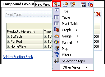 be included. From the New View drop-down list, select Selection Steps. ![]() The Selection Steps view is displayed in the compound layout. ![]() Save the analysis. |