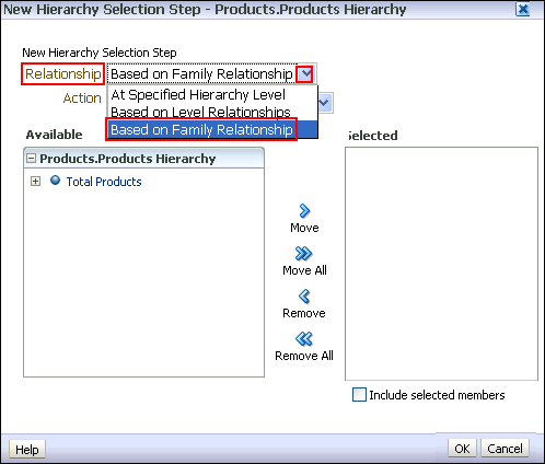 | 6 . | The New Hierarchy Selection step dialog box appears. ![]() Select “Based on Family Relationship” from the Relationship drop-down list. |