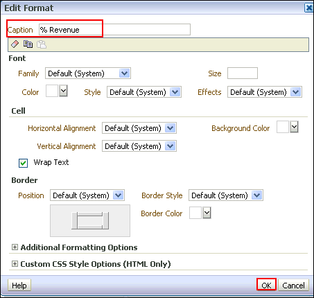 column.![]() b. In the Caption text entry box in the Edit Format dialog box, name the new column % Revenue and click OK. ![]() |