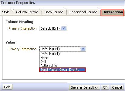 tabbed page. ![]() In the Value area, click the Primary Interaction drop-down list, and select Send Master-Detail Events. |
